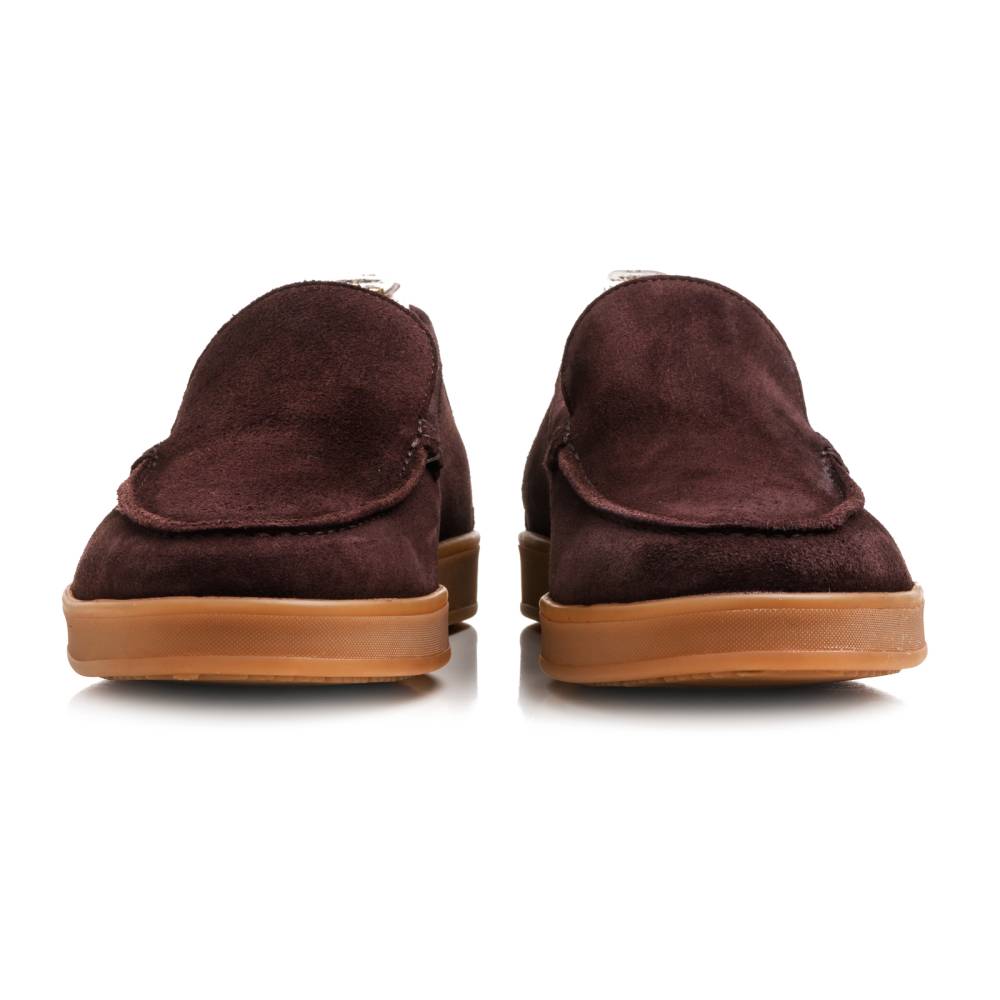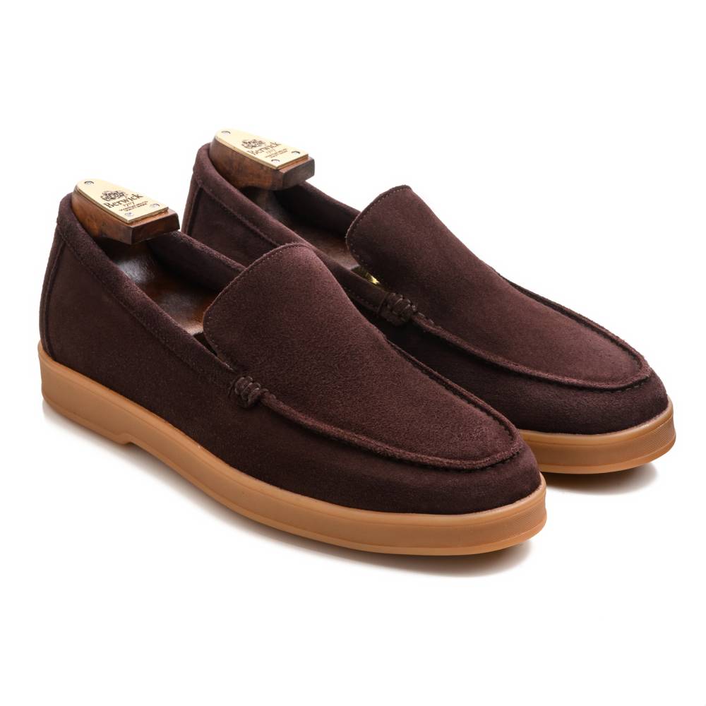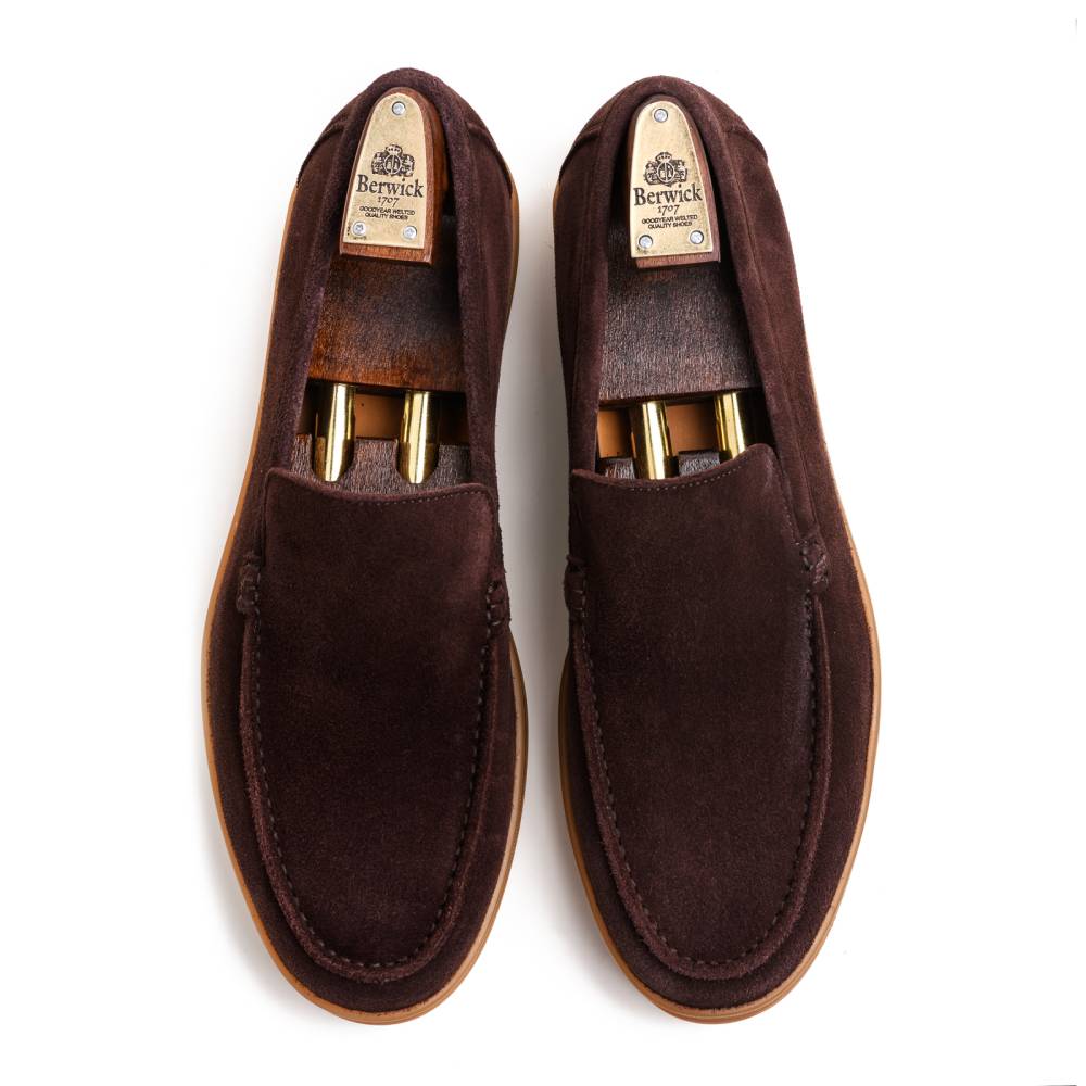 Удобные и мягкие слипоны из спортивной линейки испанского бренда Berwick. Верх выполнен из натуральной бархатистой замши тёмно-фиолетового цвета без подкладки. В конструкции модели используется гибкая резиновая подошва карамельного оттенка.