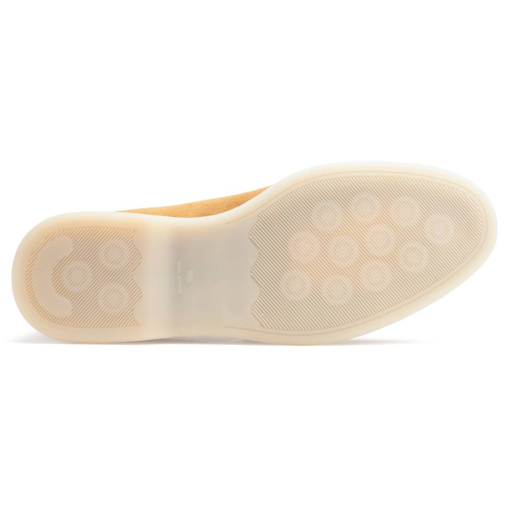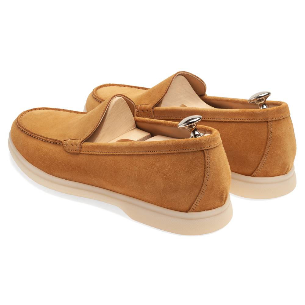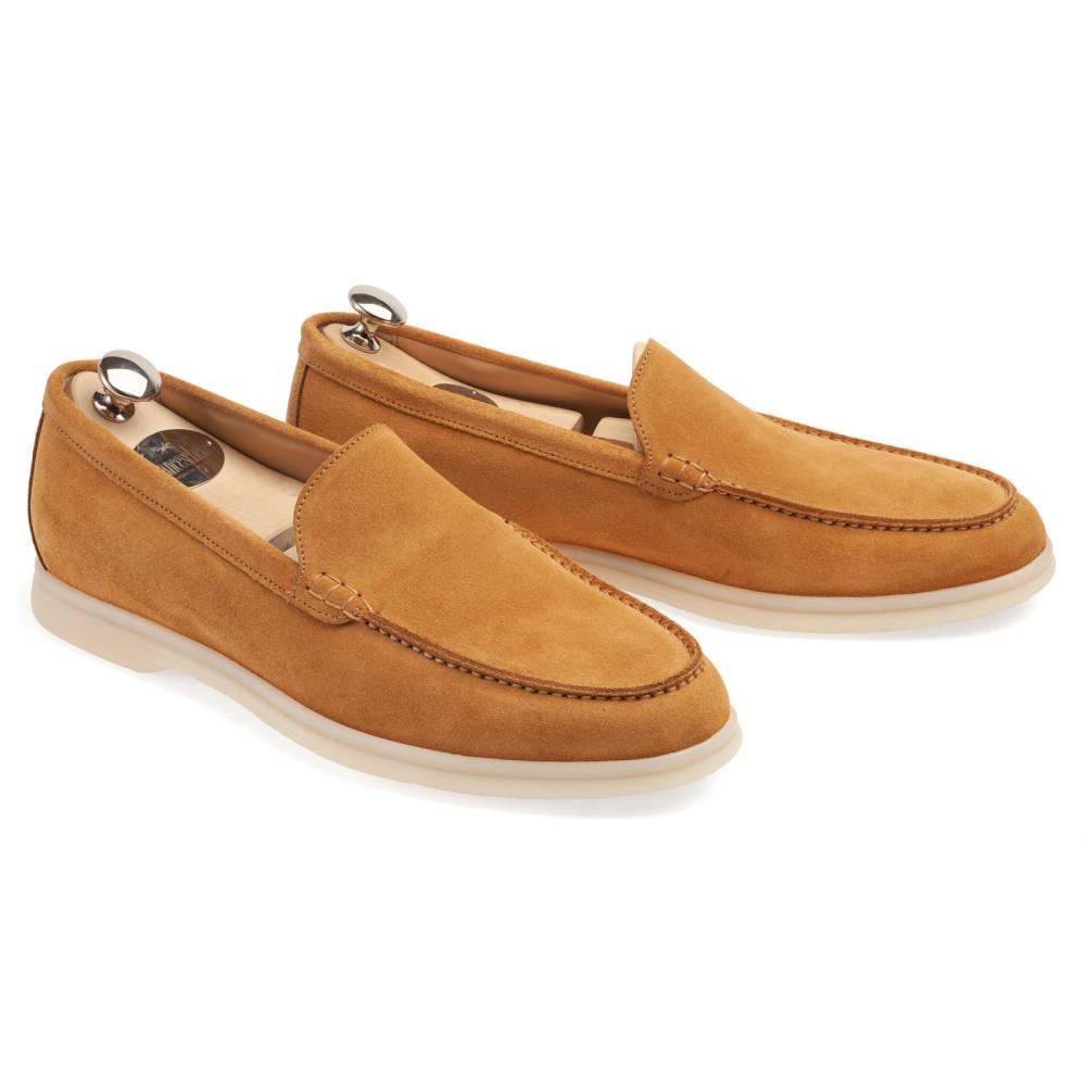 Удобные и мягкие слипоны итальянской марки Franceschetti. Верх выполнен из натуральной бархатистой замши светло-коричневого цвета, а подкладка — из бежевой телячьей кожи. Лёгкая и гибкая подошва изготовлена из качественной резины бежевого цвета. Слипоны сшиты на колодке средней полноты (F) и рассчитаны на стопу средней ширины со средним или умеренно высоким подъёмом.