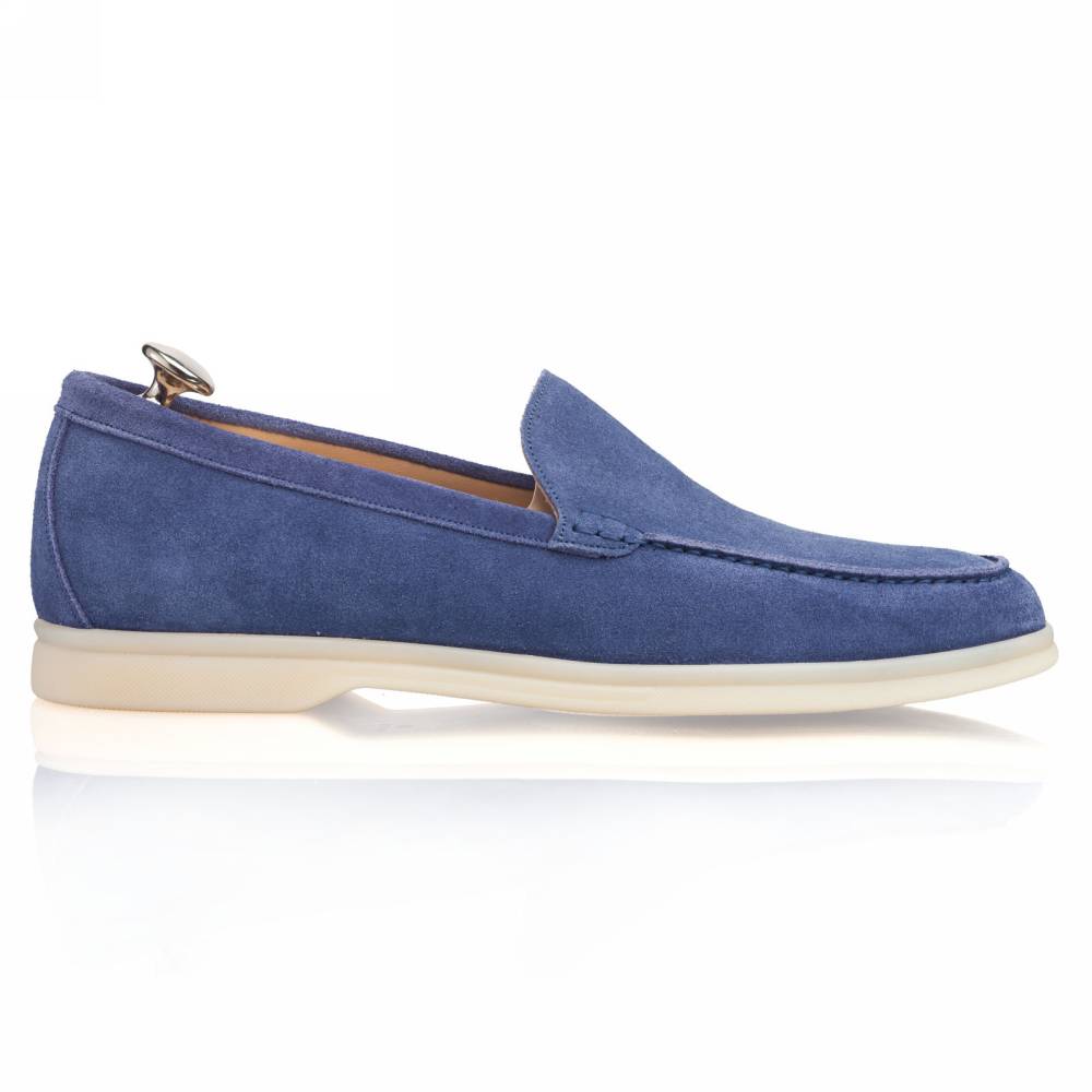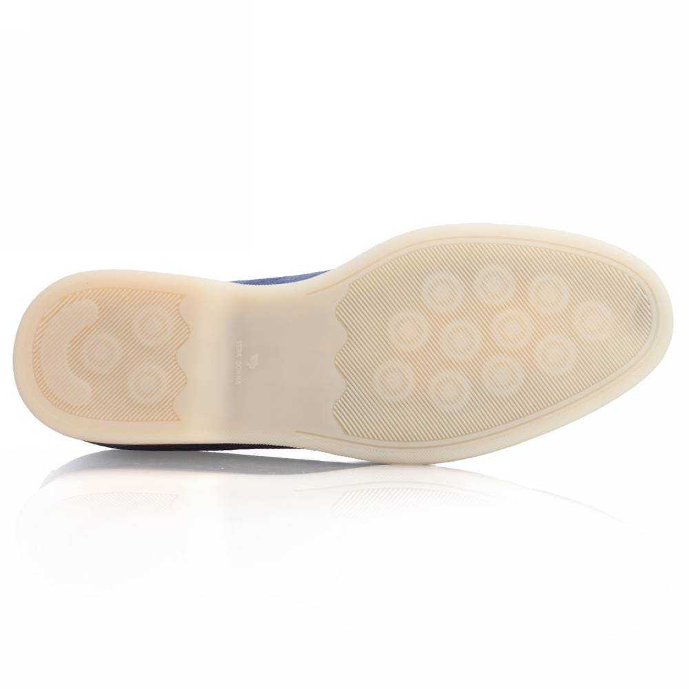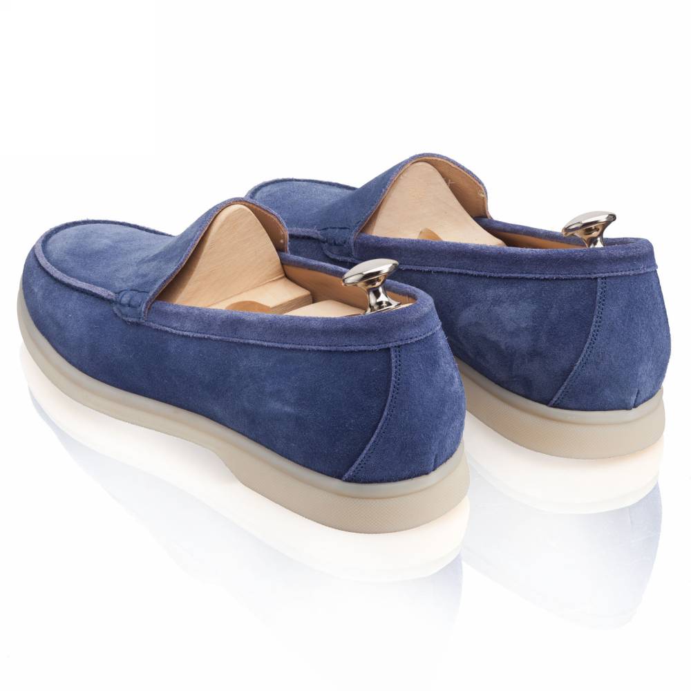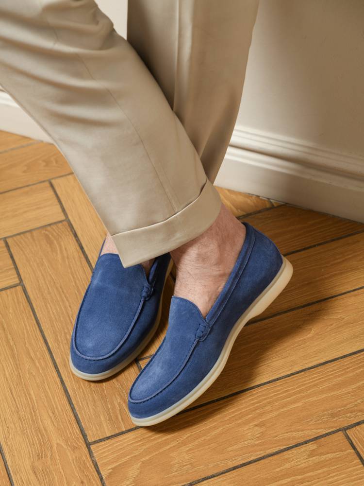 Удобные и мягкие слипоны итальянской марки Franceschetti. Верх выполнен из натуральной бархатистой замши синего цвета, а подкладка — из бежевой телячьей кожи. Лёгкая и гибкая подошва изготовлена из качественной резины бежевого цвета. Слипоны сшиты на колодке средней полноты (F) и рассчитаны на стопу средней ширины со средним или умеренно высоким подъёмом.