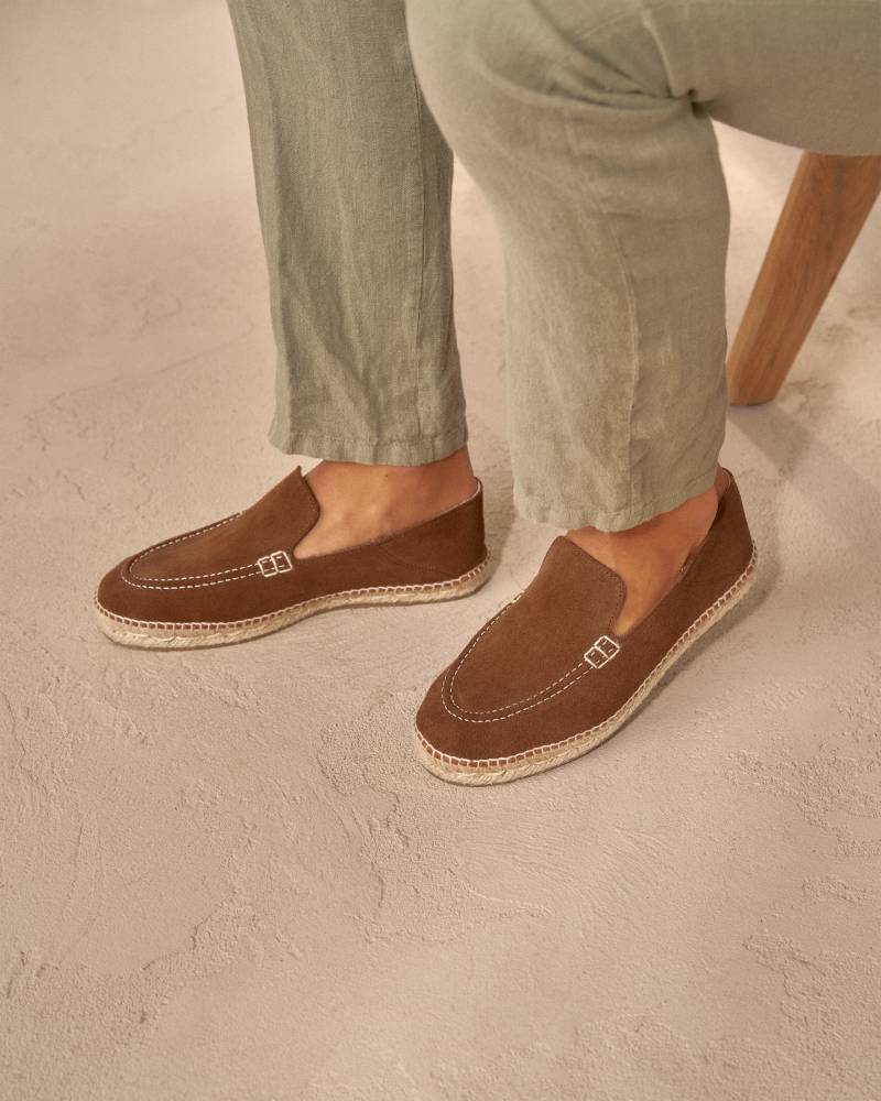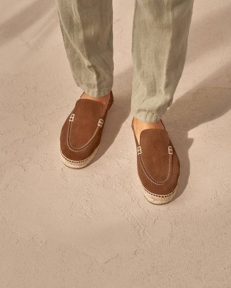 Мужские слипоны Manebi созданы из качественных натуральных материалов. Верх выполнен из фирменной натуральной замши коричневого цвета. Подкладка из тонкой и мягкой микрофибры. Подошва состоит из нескольких слоёв джута - натурального волокнистого материала, используемого для производства мешков и канатов. Благодаря джуту обувь имеет высокую воздухопроницаемость и идеально подходит даже для самой жаркой погоды. От влаги и изнашивания джутовую подошву защищает тонкий слой натурального каучука снизу.