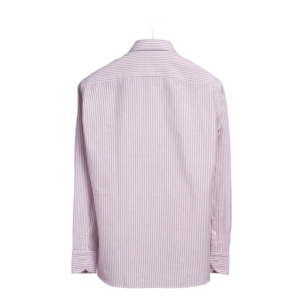 Сорочка выполнена из плотного дышащего хлопка в полоску сиреневого цвета, что обеспечит вам комфорт и уверенность на весь день. Продуманный крой гарантирует максимальное удобство и сохраняет безупречный элегантный вид.