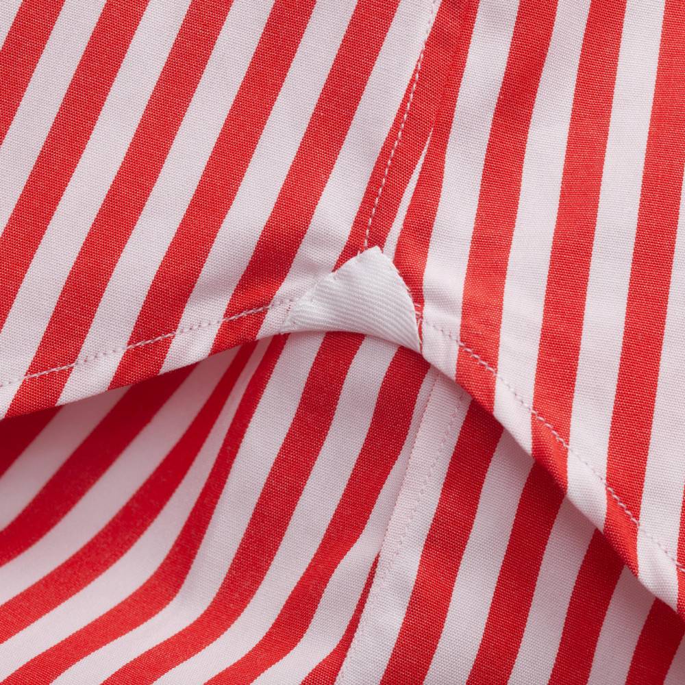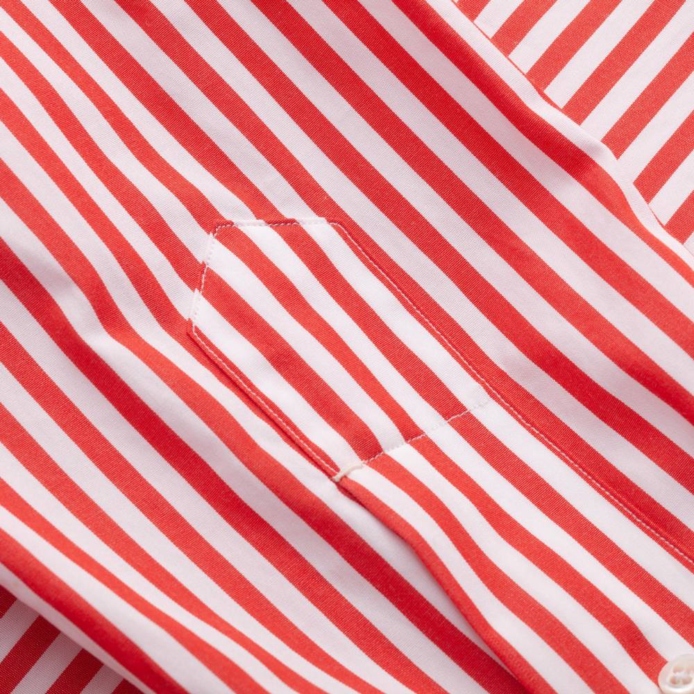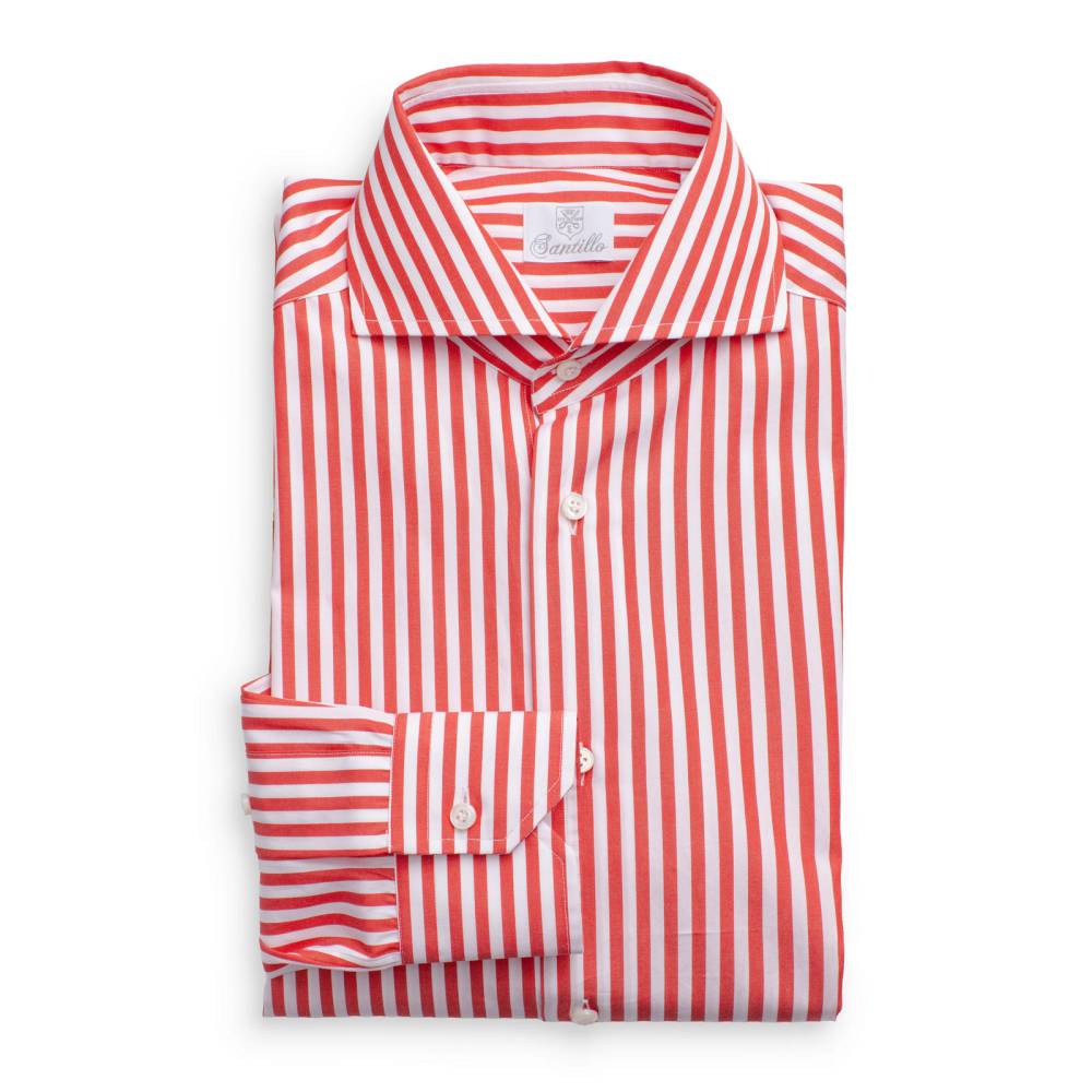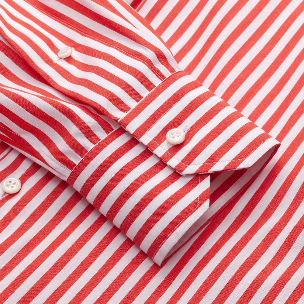 Классическая сорочка мануфактуры Santillo 1970 — квинтэссенция неаполитанского стиля. Модель полуприталенного силуэта выполнена из премиального хлопкового поплина в красную бенгальскую полоску.