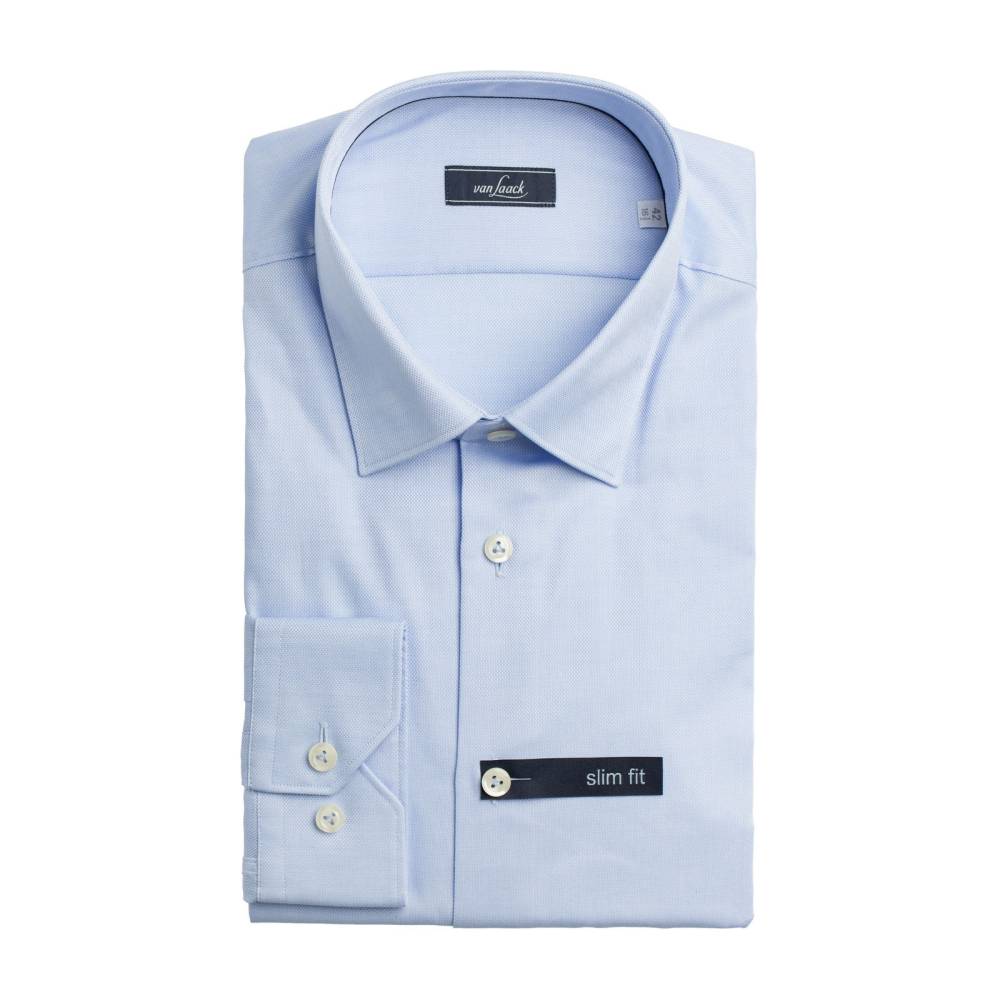 Классическая мужская сорочка голубого цвета Van Laack Blue Label из высококачественной ткани (100% хлопок). Модель приталенного силуэта. Застегивается на пуговицы из натуральных раковин. Сорочка имеет традиционный воротник «Kent». Уголки воротника дополнены фирменными косточками из гибкого пластика, которые можно вынуть перед стиркой или глажкой.