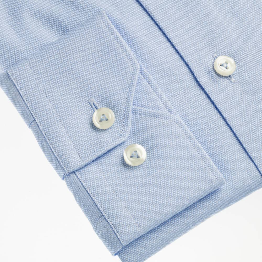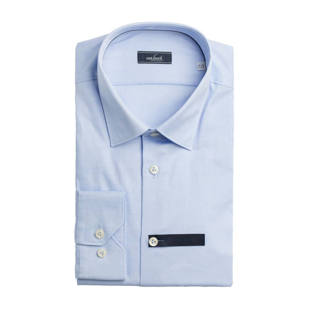 Классическая мужская сорочка голубого цвета Van Laack Blue Label из высококачественной ткани (100% хлопок). Модель универсального силуэта «tailor fit». Застегивается на пуговицы из натуральных раковин. Сорочка имеет традиционный воротник «Kent». Уголки воротника дополнены фирменными косточками из гибкого пластика, которые можно вынуть перед стиркой или глажкой.