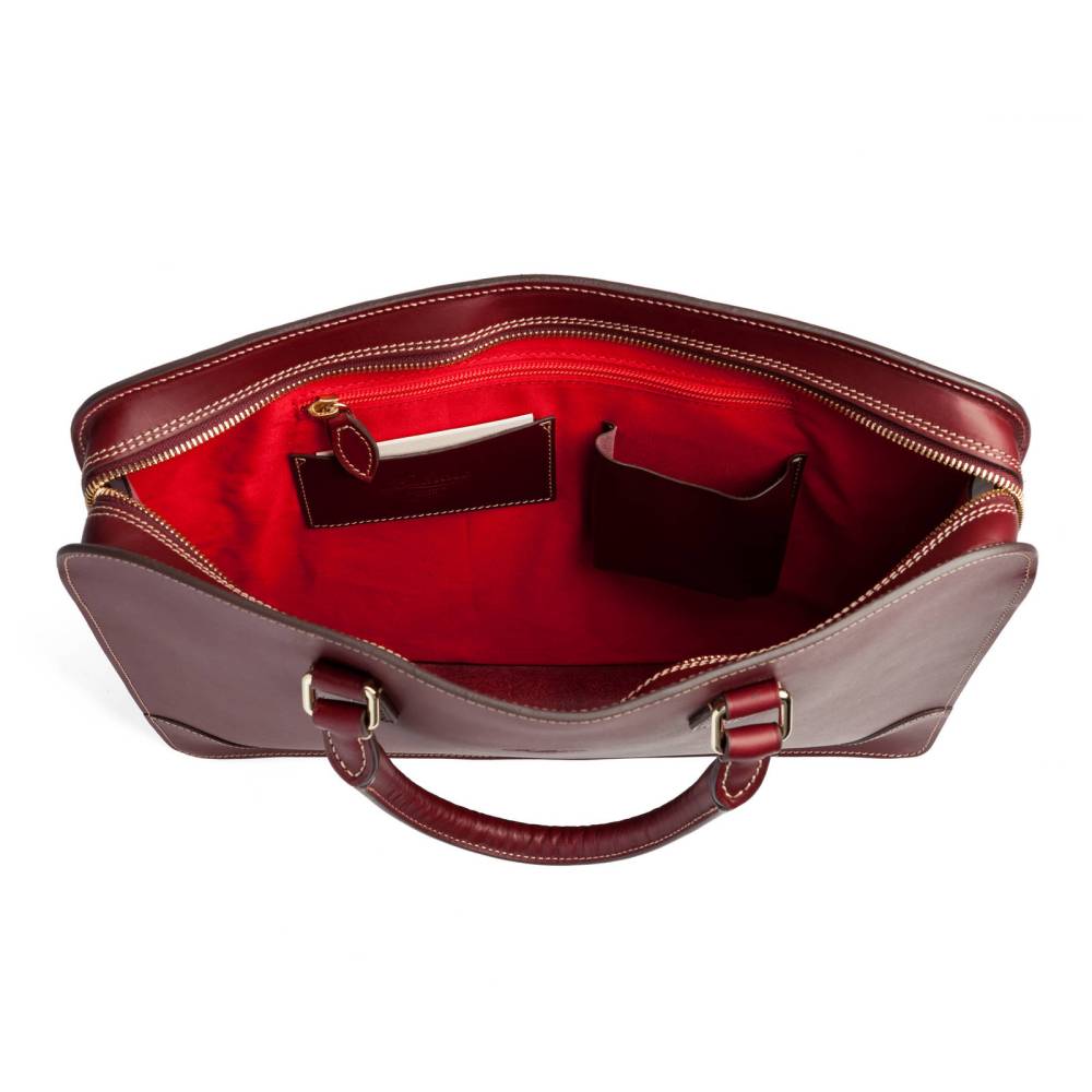 Компактная мужская сумка Boldrini Selleria на молнии. Выполнена из гладкой натуральной кожи бордового цвета с контрастной строчкой. Внутри одно отделение с холдерами для телефона и визиток, а также карман на молнии для ценных вещей. Подкладка из плотного ярко-красного текстиля. С внешней стороны секция на молнии для документов. Модель украшена тиснением в виде логотипа бренда.