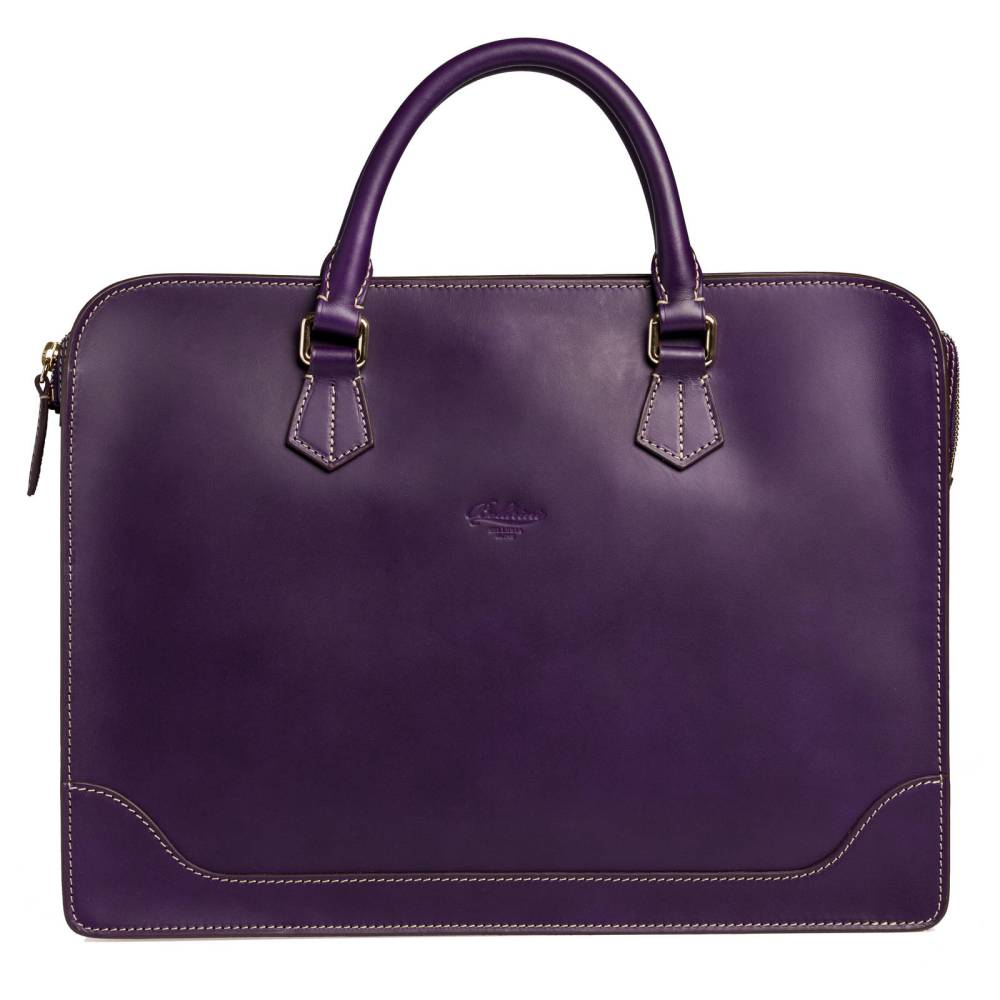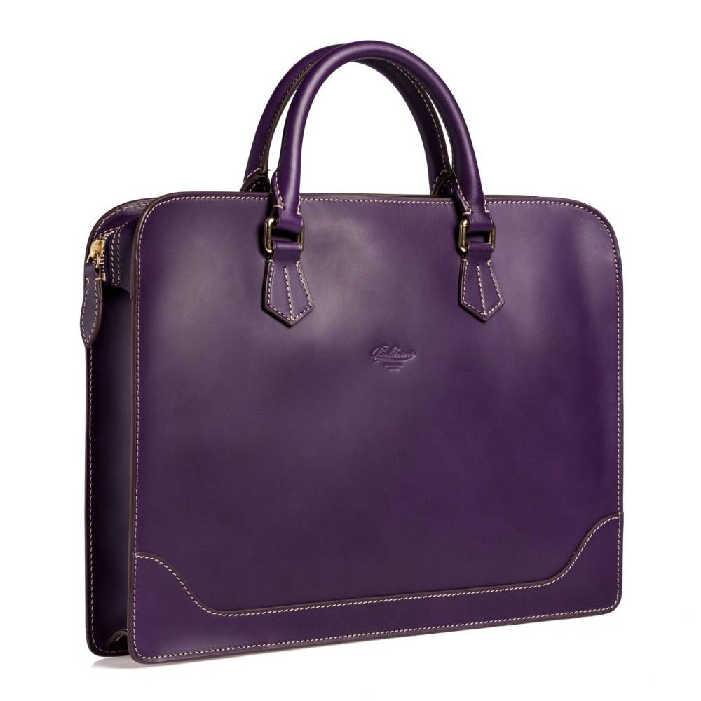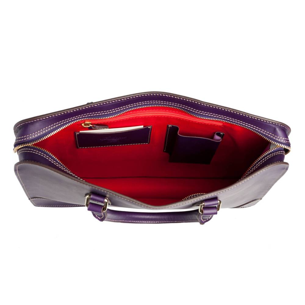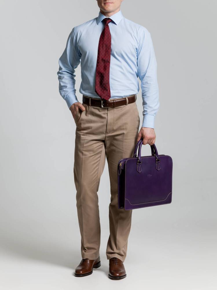 Компактная мужская сумка Boldrini Selleria на молнии. Выполнена из гладкой натуральной кожи фиолетового цвета с контрастной строчкой. Внутри одно отделение с холдерами для телефона и визиток, а также карман на молнии для ценных вещей. Подкладка из плотного ярко-красного текстиля. С внешней стороны секция на молнии для документов. Модель украшена тиснением в виде логотипа бренда.
