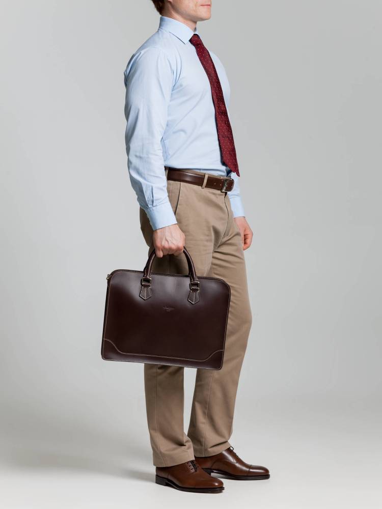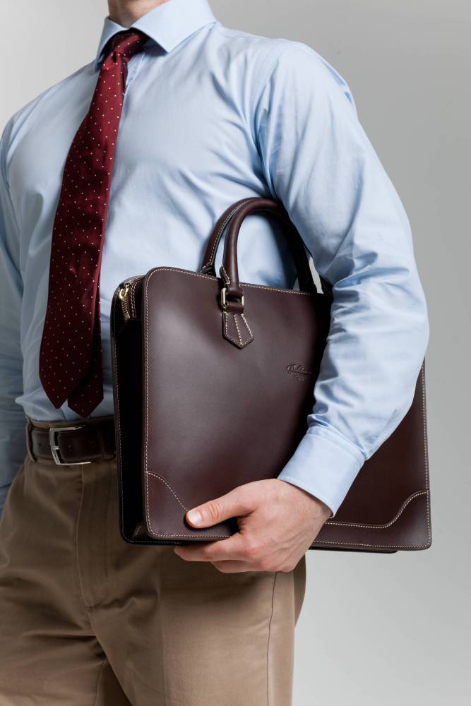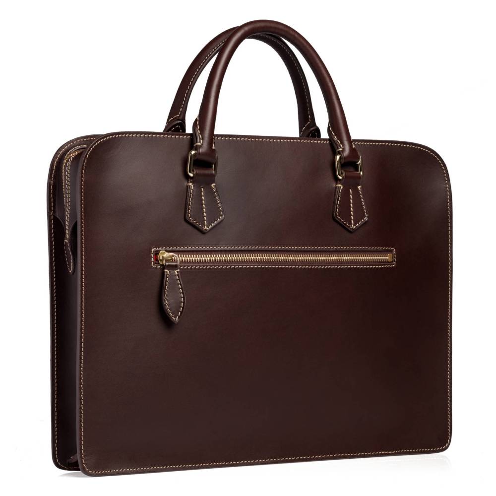 Компактная мужская сумка Boldrini Selleria на молнии. Выполнена из гладкой натуральной кожи тёмно-коричневого цвета с контрастной строчкой. Внутри одно отделение с холдерами для телефона и визиток, а также карман на молнии для ценных вещей. Подкладка из плотного бежевого текстиля. С внешней стороны секция на молнии для документов. Модель украшена тиснением в виде логотипа бренда.