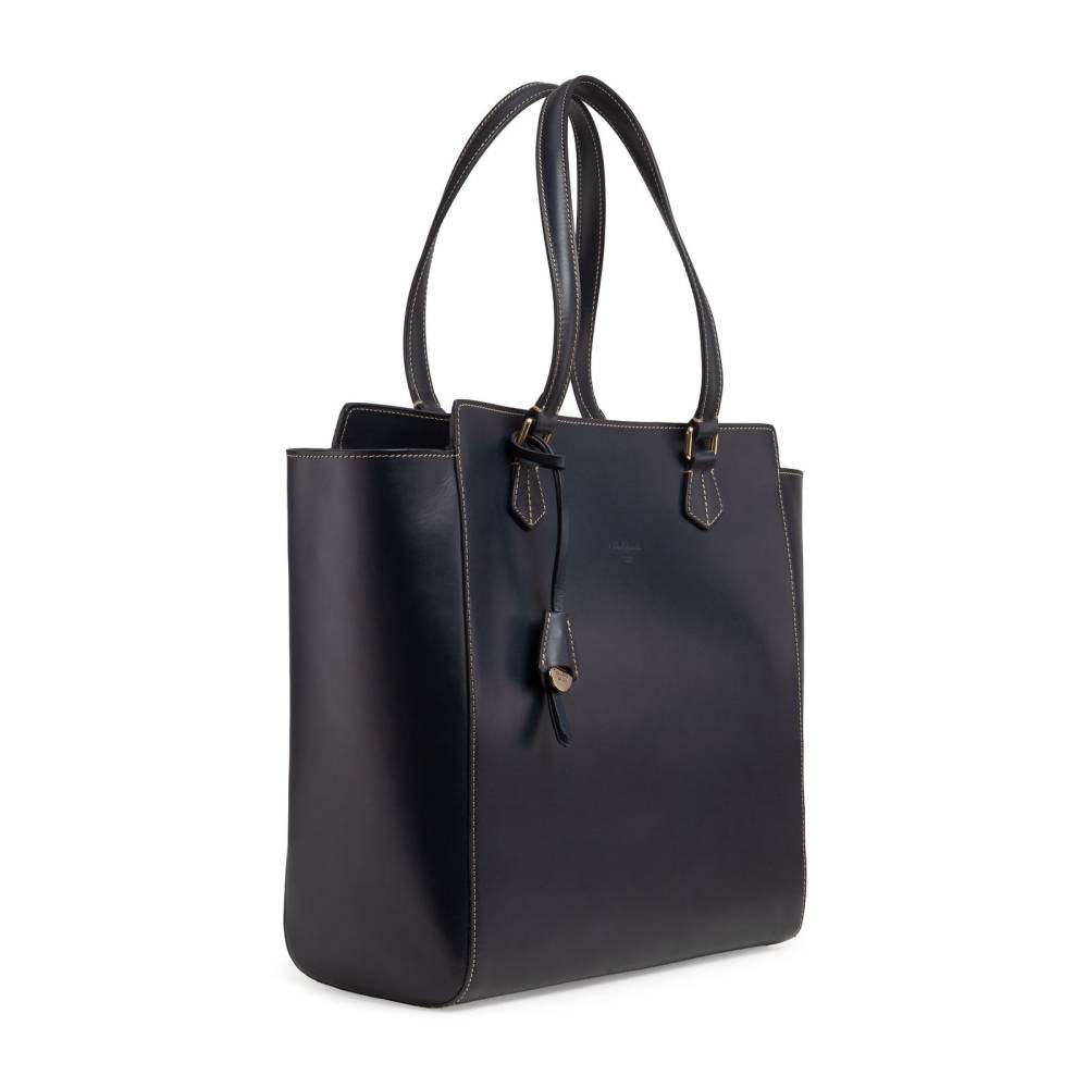 Сумка-тоут от итальянской мануфактуры Boldrini Selleria. Модель выполнена из высококачественной тосканской кожи растительного дубления в темно-синем цвете. Сумка фиксируется по центру кожаным хлястиком на кнопке, обеспечивая удобный доступ к содержимому. Продуманное внутреннее пространство разделено центральным отделением на молнии на две просторные секции. Подкладка из эффектного красного хлопка — легендарная визитная карточка бренда. Дно сумки защищено металлическими ножками для износостойкости. Модель украшена изящной подвеской с логотипом мануфактуры. Благодаря лаконичному дизайну, универсальна и подойдет как женщинам, так и мужчинам.