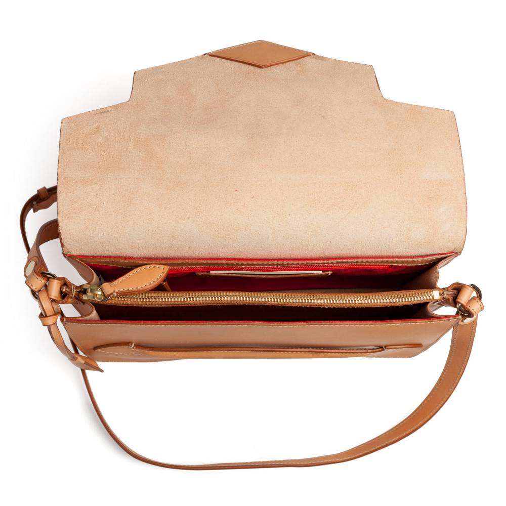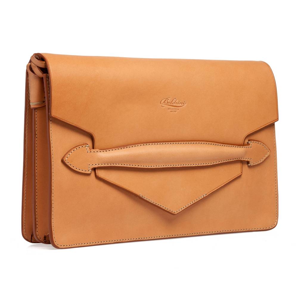 В производстве сумок Boldrini Selleria используется кожа растительного дубления, приятная на ощупь, с мягким матовым блеском. Такая кожа ценится за долговечность, а также за благородный винтажный вид, который приобретается со временем.