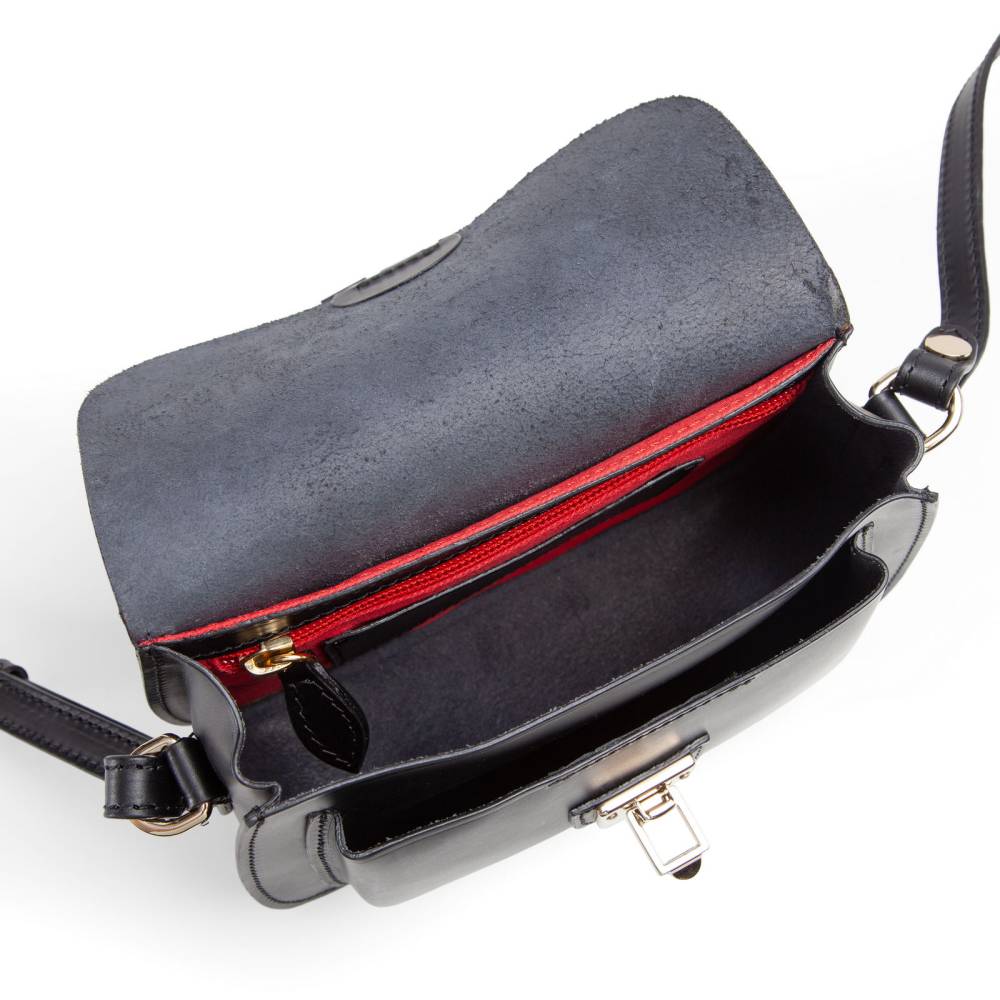 Женская сумка Barbara из коллекции Ribot от итальянской мануфактуры Boldrini Selleria — воплощение мастерства потомственных кожевенников. Модель выполнена из высококачественной телячьей кожи растительного дубления черного цвета. Продуманное внутреннее пространство с двумя отделениями и карманом на молнии дополнено эффектной красной подкладкой из хлопка, ставшей визитной карточкой бренда. Регулируемый плечевой ремень гарантирует комфорт в течение всего дня, а безукоризненная фурнитура и ручная отделка превращают сумку в объект истинного желания. Модель украшена изящной металлической подвеской с логотипом мануфактуры и создана для тех, кто ценит долговечность и эстетику натуральных материалов.