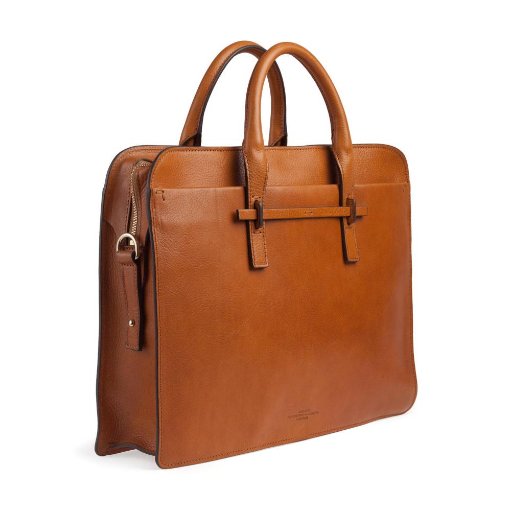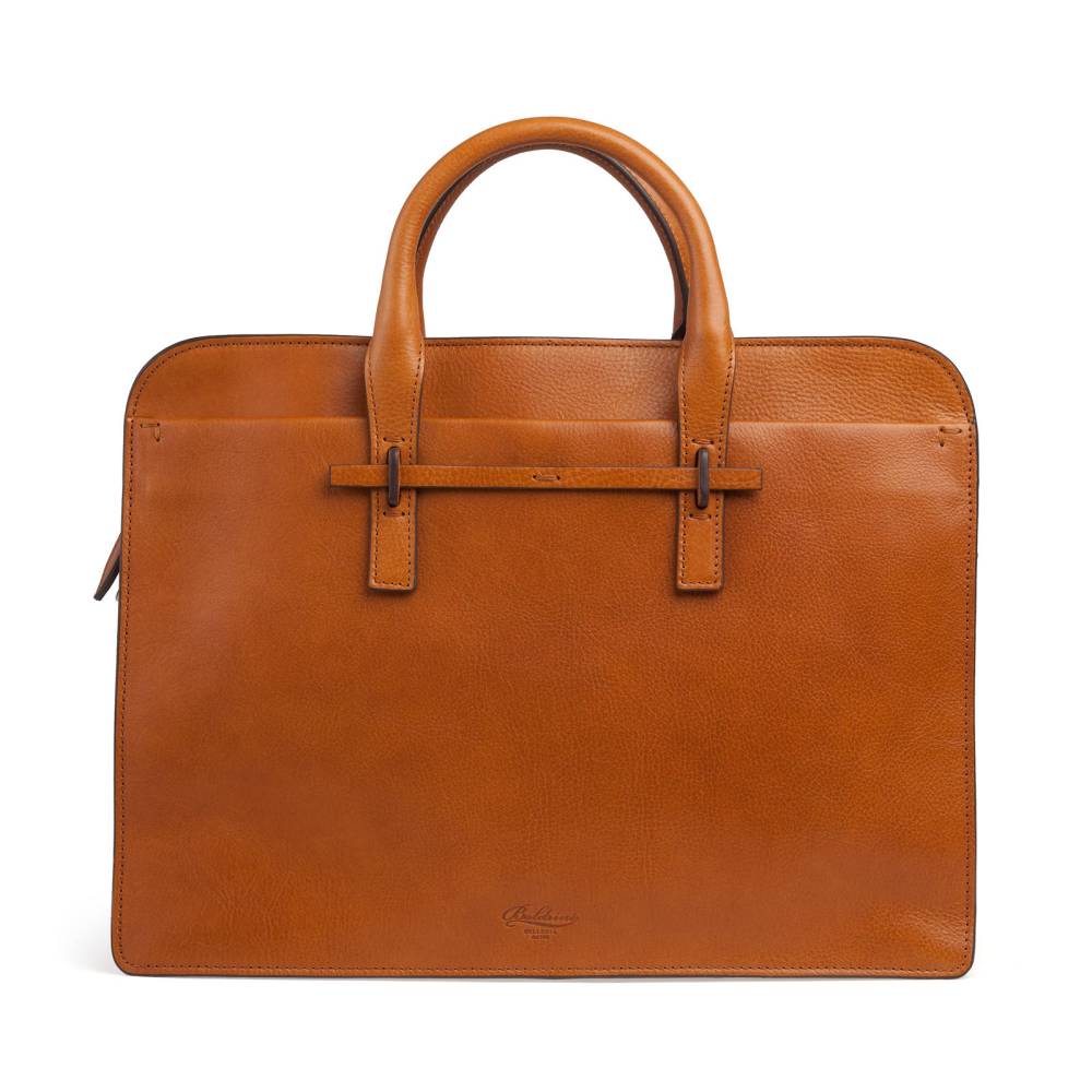 Вместительная сумка Boldrini Selleria на молнии. Выполнена из светло-коричневой натуральной кожи с зернистой фактурой. Строчка выполнена нитью в тон. Внутри одно отделение с карманами для ценных вещей, портмоне, телефона и визиток, а также секция для ноутбука с диагональю 15 дюймов; снаружи имеется два кармана для необходимых бумаг. Подкладка выполнена из высококачественного хлопкового текстиля бежевого цвета. Модель украшена небольшим тиснением в виде логотипа бренда. К сумке прилагается плечевой ремень. Подойдёт как для мужчин, так и для женщин.