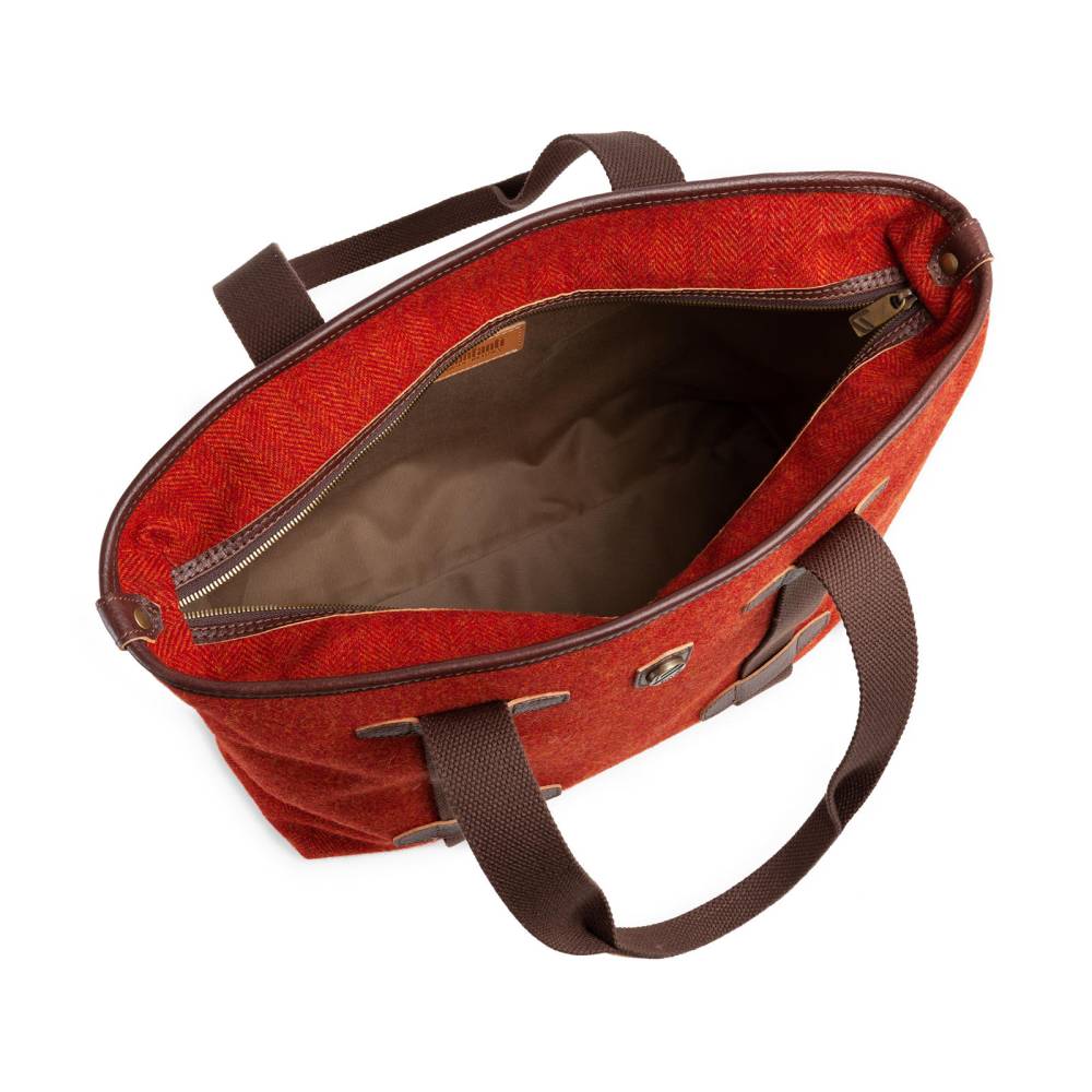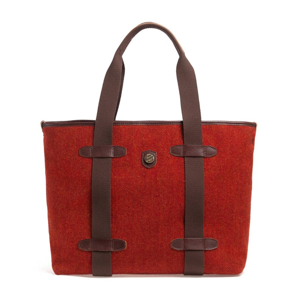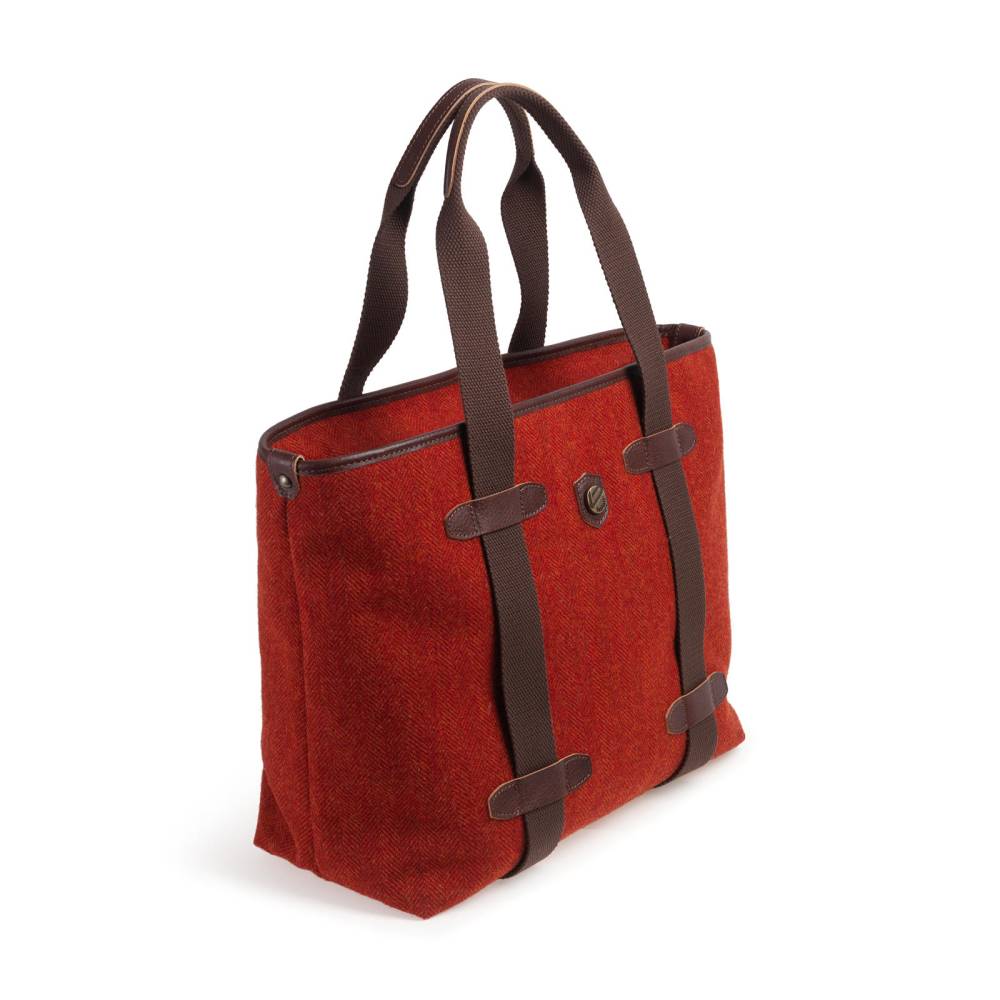 Стильная и практичная сумка-тоут итальянской марки Bonfanti. Выполнена из тёмно-красной шерстяной ткани, фактура которой напоминает твид, а детали отделки — из натуральной тёмно-коричневой кожи с зернистой фактурой. Ручки — из прочного и плотного канваса. Внутри одно отделение и карман на молнии для ценных вещей и документов. Модель украшена латунной эмблемой бренда. Для удобства сумка застёгивается на молнию. Подойдёт как для мужчин, так и для женщин.