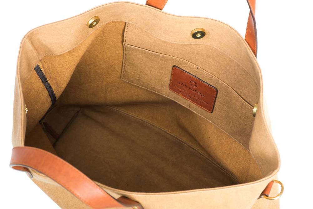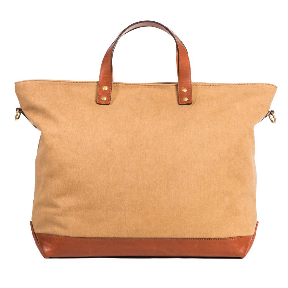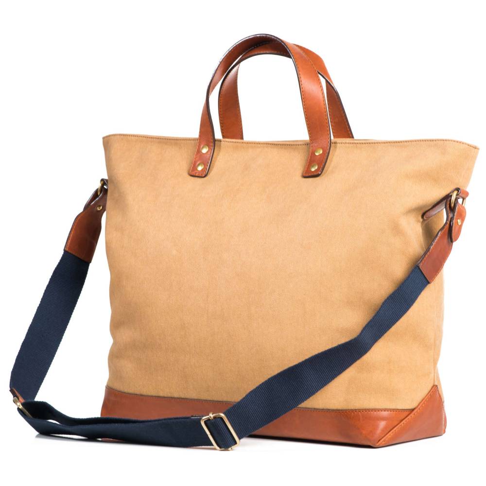 Вместительная сумка Peterson из коллекции испанского бренда La Portegna. Модель выполнена из плотной хлопковой ткани бежевого цвета в сочетании с высококачественной кожей растительного дубления. Внутри расположены два кармана для небольших документов, а также одно боковое отделение на молнии для ценных вещей. Сумка застегивается при помощи магнитных кнопок. В комплект входит регулируемый плечевой ремень.