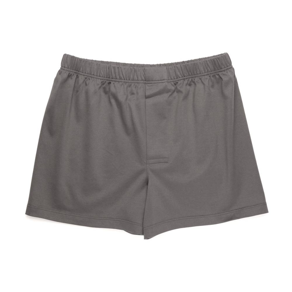 Серые классические мужские трусы-боксеры премиум-класса итальянского бренда Bresciani. Модель изготовлена из санфоризованного экстрадлинноволокнистого египетского хлопка (санфоризованные изделия не садятся после стирки). В процессе мерсеризации с пряжи удаляются все свободные волокна, благодаря чему она становится гладкой и блестящей и дольше сохраняет первозданный вид. Швы на модели плоские и не доставляют дискомфорта. Резинка украшена вытканным названием бренда.