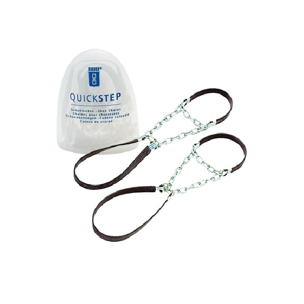 Цепь на подошву обуви Nico Quickstep предназначена для использования на очень скользких поверхностях. Резиновые петли надеваются на каблук и носовую часть обуви, а цепь располагается под передней частью подошвы. Аксессуар компактно складывается в футляр.