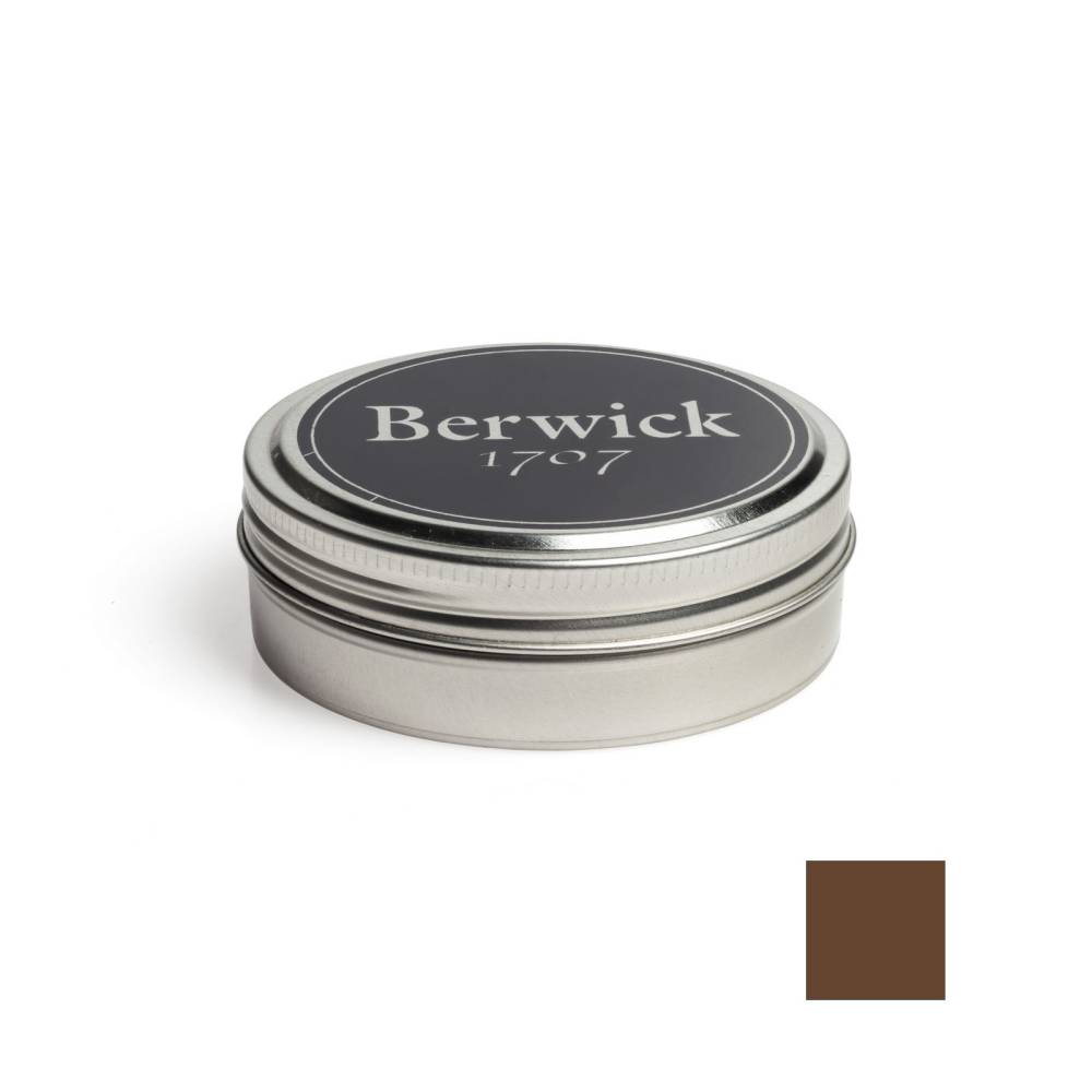 Тёмно-коричневая вакса Berwick для глянцевой полировки кожи обуви и глассажа. Представляет собой сочетание натурального пчелиного воска и карнаубского воска, получаемого из экстракта бразильской пальмы. Вакса пропитывает и смягчает кожу, а также придает водоотталкивающие свойства.