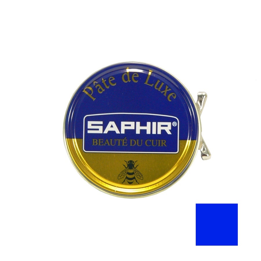 Синяя вакса Saphir Pate De Luxe для глянцевой полировки кожи обуви и глассажа. Представляет собой сочетание натурального пчелиного воска и карнаубского воска, получаемого из экстракта бразильской пальмы. Вакса пропитывает и смягчает кожу, а также придает водоотталкивающие свойства.