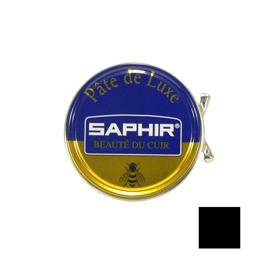 Чёрная вакса Saphir Pate De Luxe для глянцевой полировки кожи обуви и глассажа. Представляет собой сочетание натурального пчелиного воска и карнаубского воска, получаемого из экстракта бразильской пальмы. Вакса пропитывает и смягчает кожу, а также придает водоотталкивающие свойства.