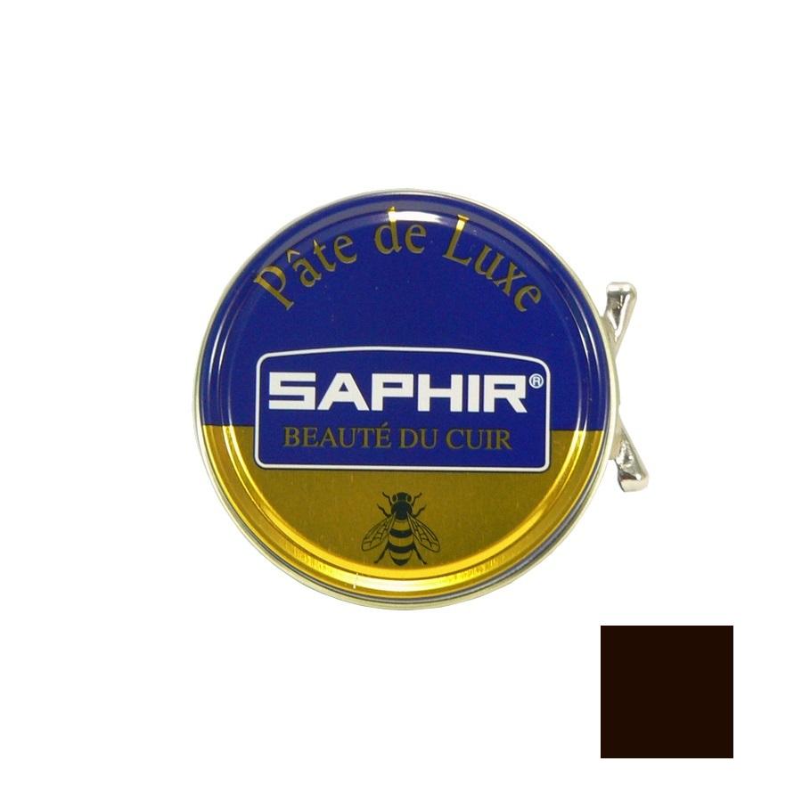 Тёмно-коричневая вакса Saphir Pate De Luxe для глянцевой полировки кожи обуви и глассажа. Представляет собой сочетание натурального пчелиного воска и карнаубского воска, получаемого из экстракта бразильской пальмы. Вакса пропитывает и смягчает кожу, а также придает водоотталкивающие свойства.