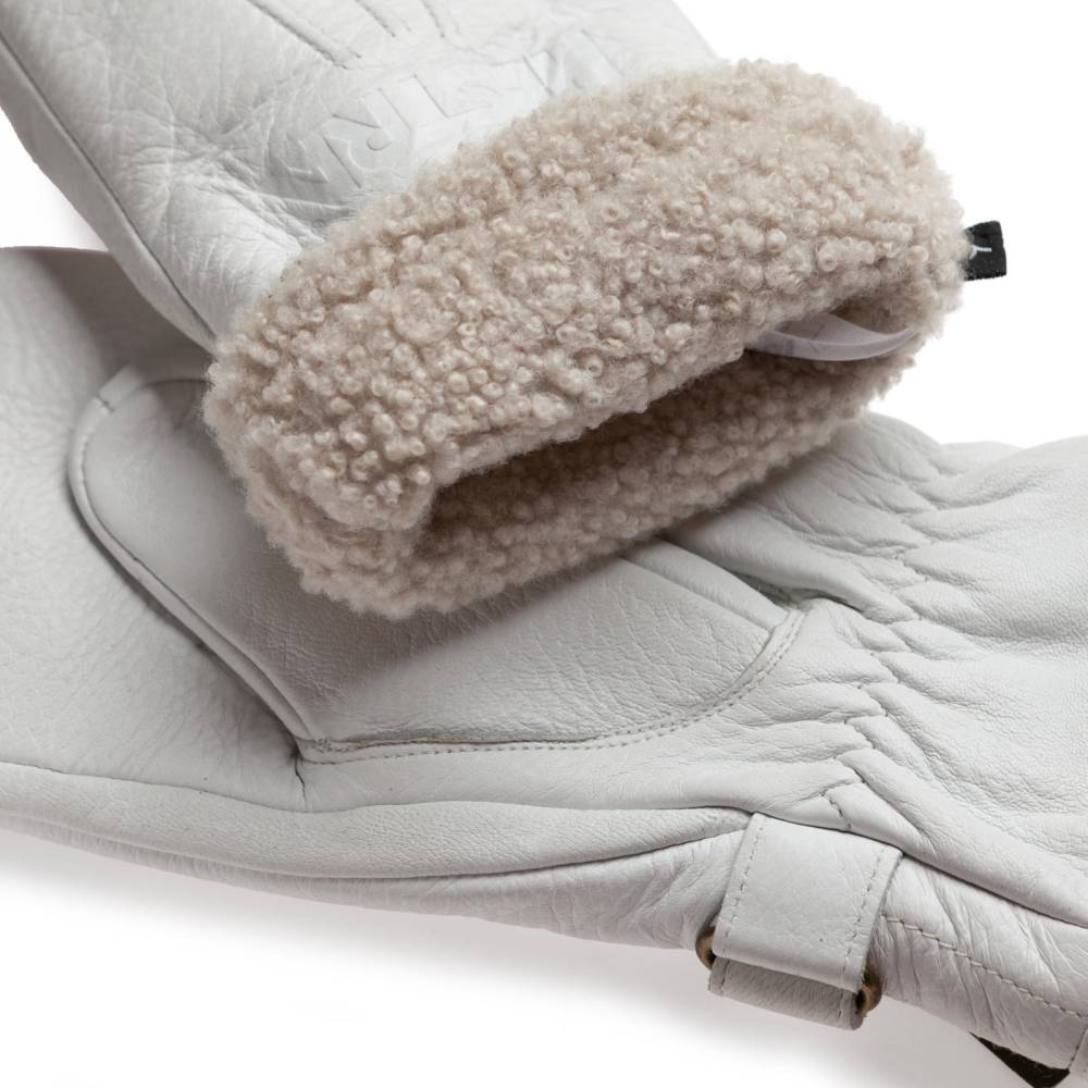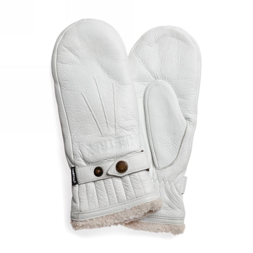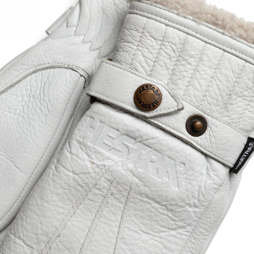 Тёплые женские варежки Hestra созданы специально для длительного пребывания на открытом воздухе при минусовых температурах. С внешней стороны модель выполнена из приятной на ощупь износостойкой кожи лося белого цвета с великолепной зернистой фактурой, а с внутренней стороны имеет густой ворс из овчины. Манжеты дополнены эластичной сборкой, которая позволяет быстро и легко надевать варежки. Область запястья регулируется при помощи ремешка с металлической кнопкой. Перчатки декорированы строчкой в тон и неброским логотипом марки.