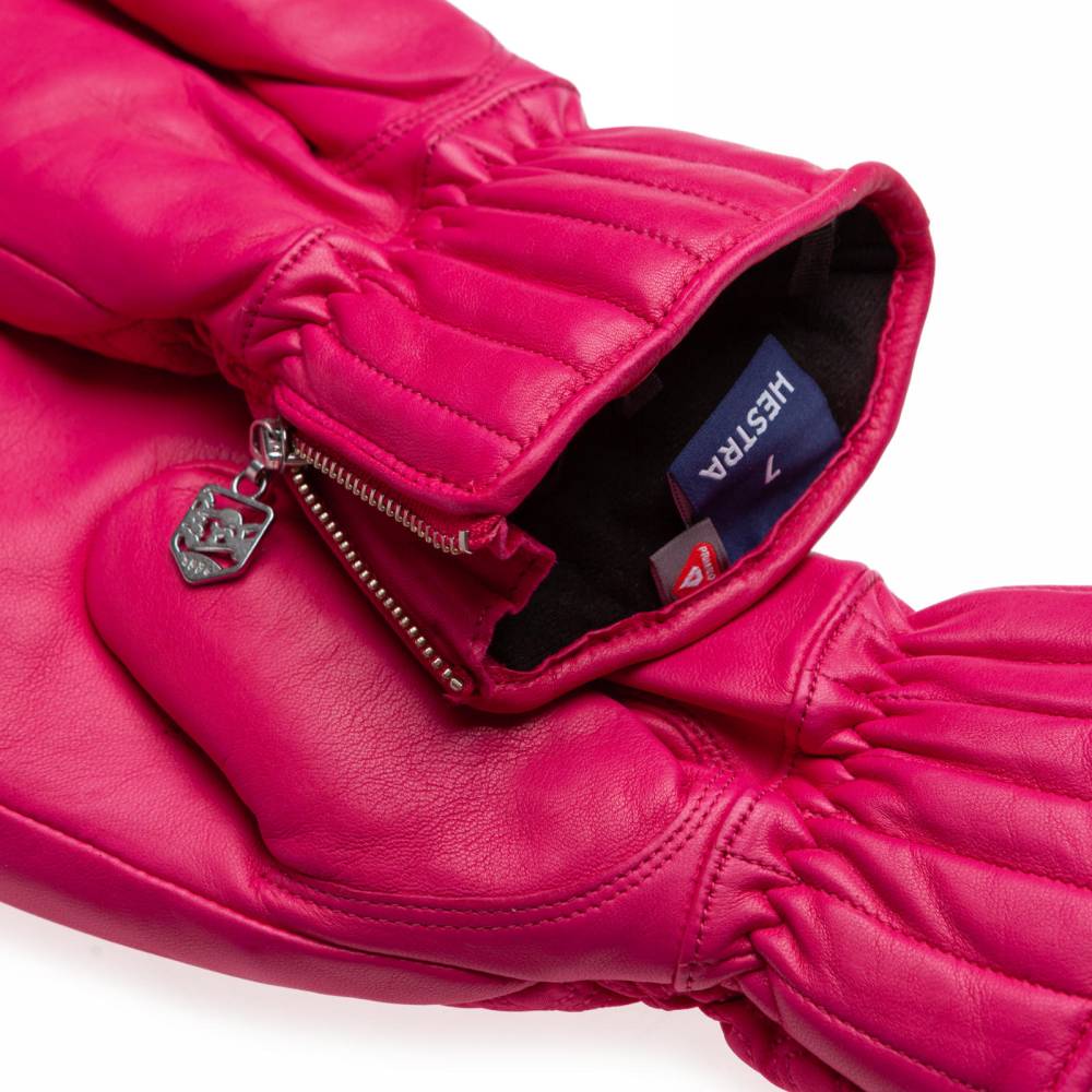 Тёплые женские спортивные варежки розового цвета Hestra Aspen Mitt предназначены для активного отдыха в горах, в том числе для катания на лыжах. Со стороны ладони варежки выполнены из мягкой износостойкой кожи ягнёнка, а с внешней – из прочного непродуваемого и водонепроницаемого полиэстера Hestra Appas в сочетании с воловьей кожей. Подкладка выполнена из лёгкого и дышащего ворсистого утеплителя Primaloft® Gold на основе полиэстера. Модель дополнена эластичной сборкой на запястье и молнией сбоку. Варежки подходят для занятий спортом и длительных прогулок при температуре до -20ºС.