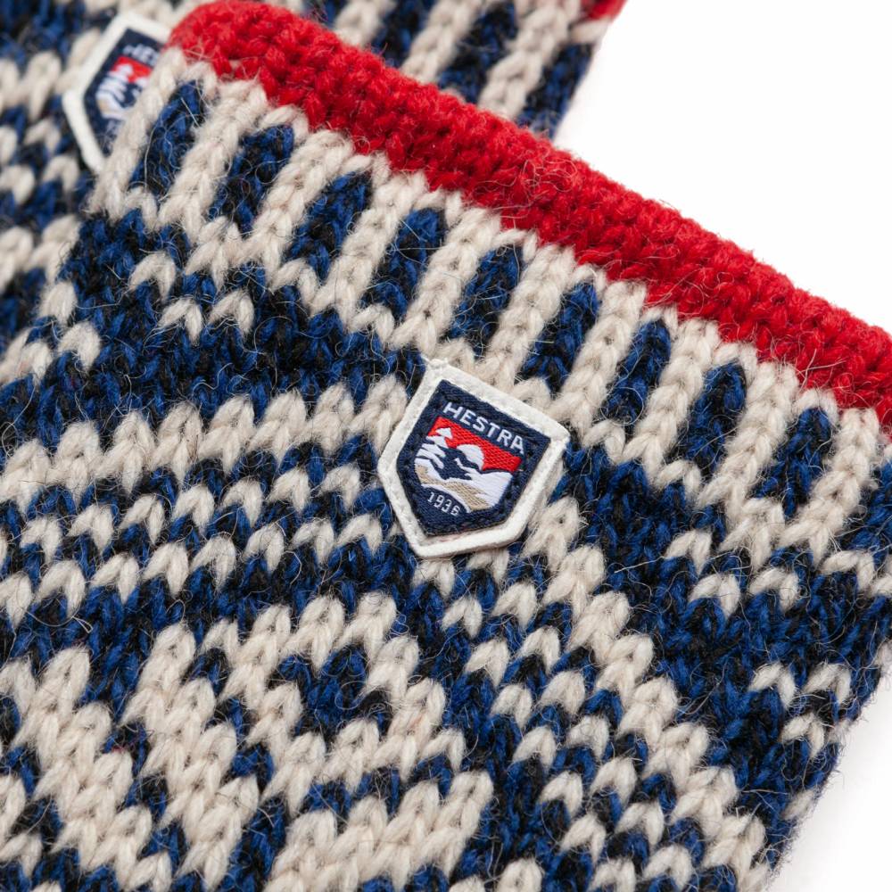 Тёмно-синие вязаные варежки Hestra со скандинавским узором из коллекции Sport Classic. Модель изготовлена из тёплой и долговечной смесовой пряжи (85% овечья шерсть и 21% полиамид) и отлично подойдёт для прогулок на открытом воздухе при минусовых температурах в городских условиях и за городом. Подкладка из мягкого тёплого материала: микса шерсти, акрила и полиэстера. Модель декорирована яркой красной полосой на манжетах и логотипом бренда.