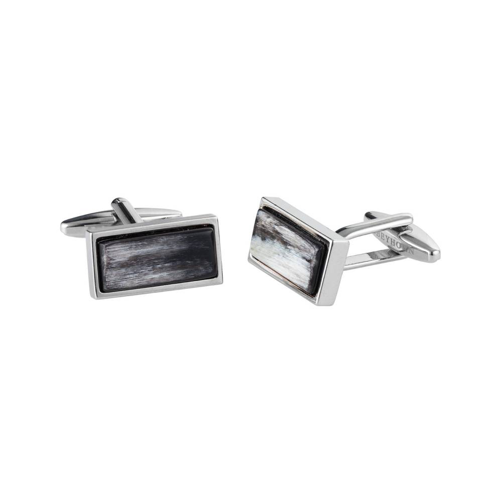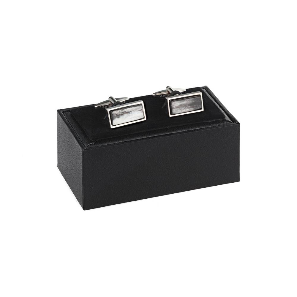 Уникальные запонки Abbeyhorn со вставкой из натурального шлифованного рога прямоугольной формы. Основа выполнена из стали с родиевым покрытием. Ножка украшена выгравированным логотипом бренда. Фирменная подарочная коробка прилагается.