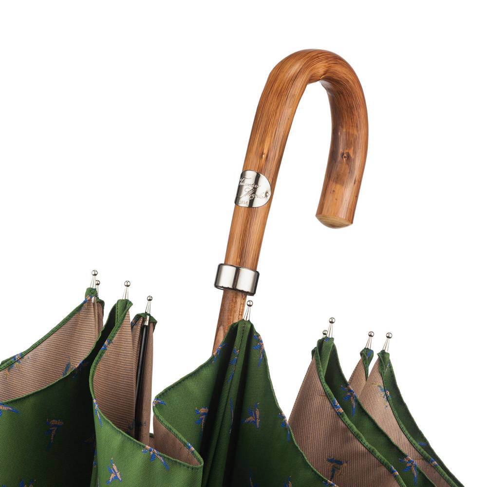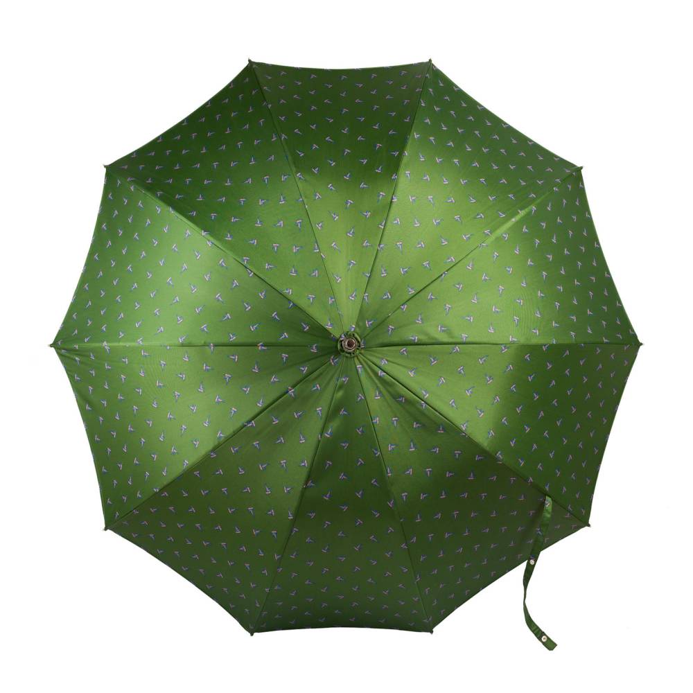 Яркий зонт-трость Maglia Francesco подойдёт как для мужчин, так и для женщин. Купол выполнен из гладкого двустороннего полиэстера с оригинальным принтом в виде птиц на зелёном фоне. Удобная рукоять классической изогнутой формы изготовлена из светлой древесины клёна. Металлический каркас. Стержень из прочной древесины бука. Верхняя часть стрежня дополнена металлическим наконечником, защищающим дерево от сколов. Рукоять украшена шильдом с выгравированным логотипом бренда.