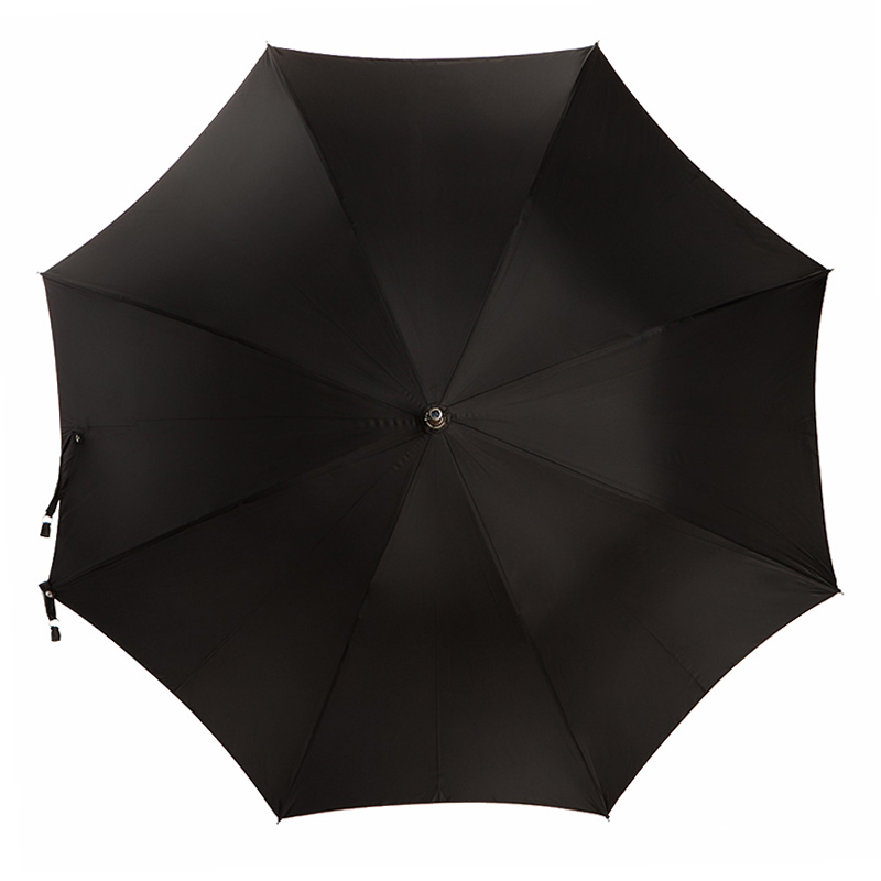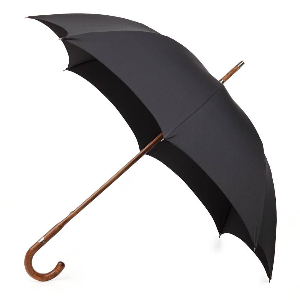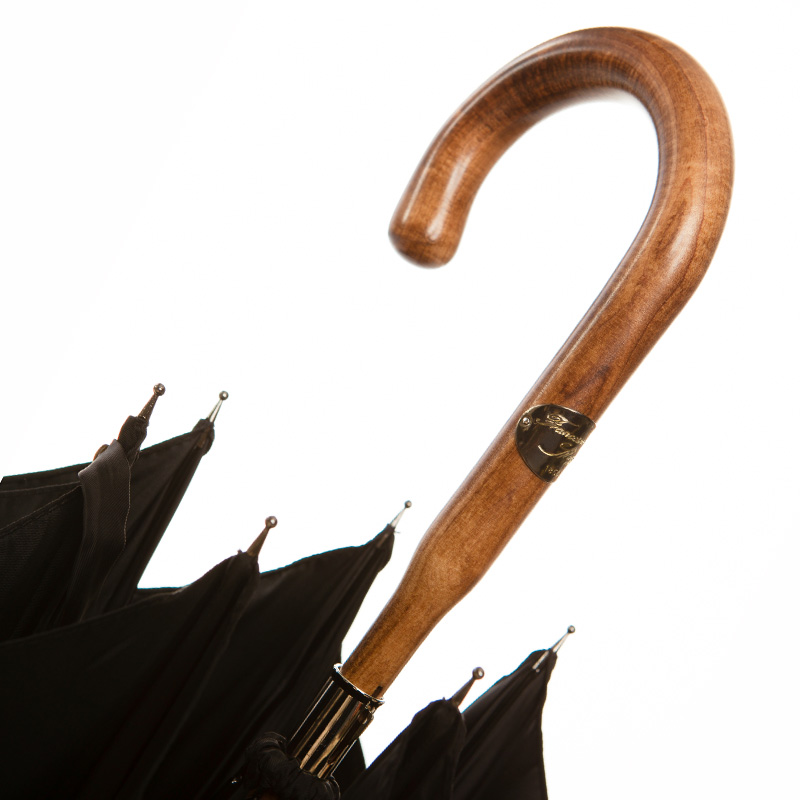 Классический мужской зонт-трость Maglia Francesco с объёмным куполом из плотного чёрного полиэстера. Ручка и стержень выполнены из цельного куска древесины (клён), с матовой поверхностью. Такая технология производства требует особых навыков и под силу только мастерам с многолетним опытом работы. Модель дополнена наконечником из полированного металла, защищающего стержень от сколов при соприкосновении с асфальтом. Ручка украшена металлическим шильдом с выгравированным логотипом компании. К зонту прилагаются чехол из материала купола, а также текстильный кофр для хранения.
