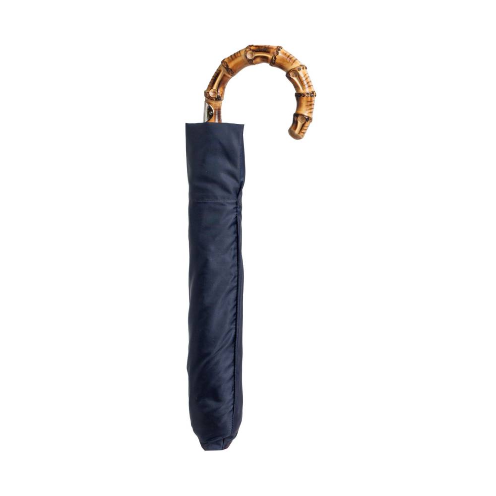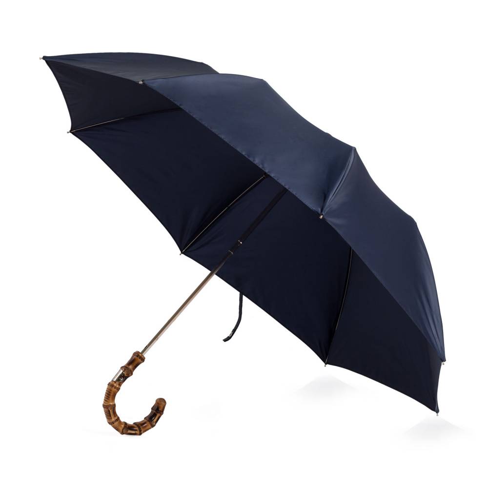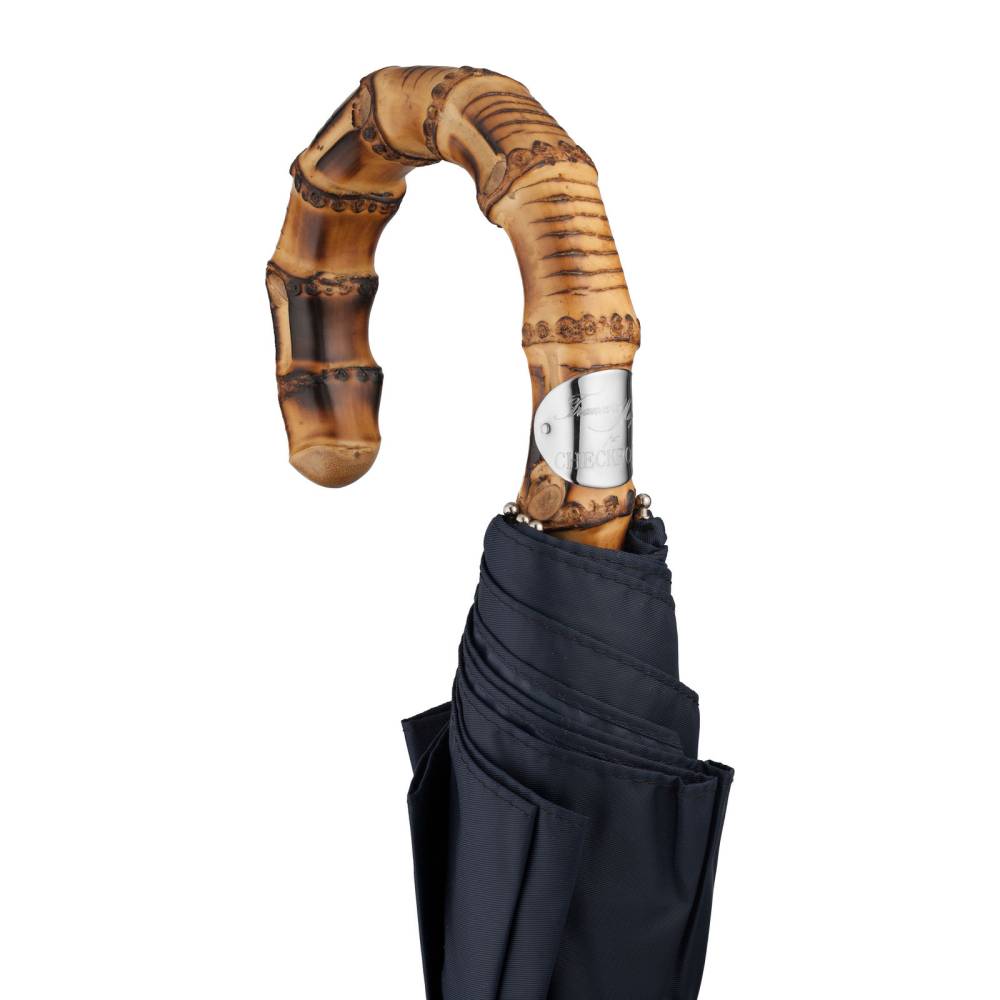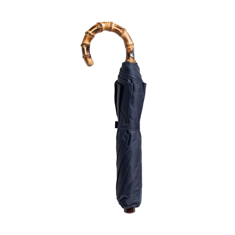 Складной механический зонт Maglia Francesco с куполом из приятного на ощупь полиамида синего цвета. Металлический каркас. Стержень выполнен из полированной стали, а ручка – из бамбука. Место соединения стержня и ручки укреплено металлическим кольцом. Ручка украшена шильдом с выгравированным логотипом компании.